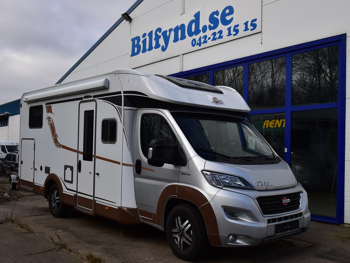 Halvintegrerad alt helintegrerad husbil t ex Bürstner Nexxo/Ixeo/Delfin - Dethleffs Pulse T7051EB/QBM - Dethleffs Trend i7057EB/Qmb eller likvärdig. Bilderna är bara en illustration av fordonsklassen. Modell på två längsgående sängar baktill eller queensbädd och taksäng ovanför sittgruppen/hubbette fram.