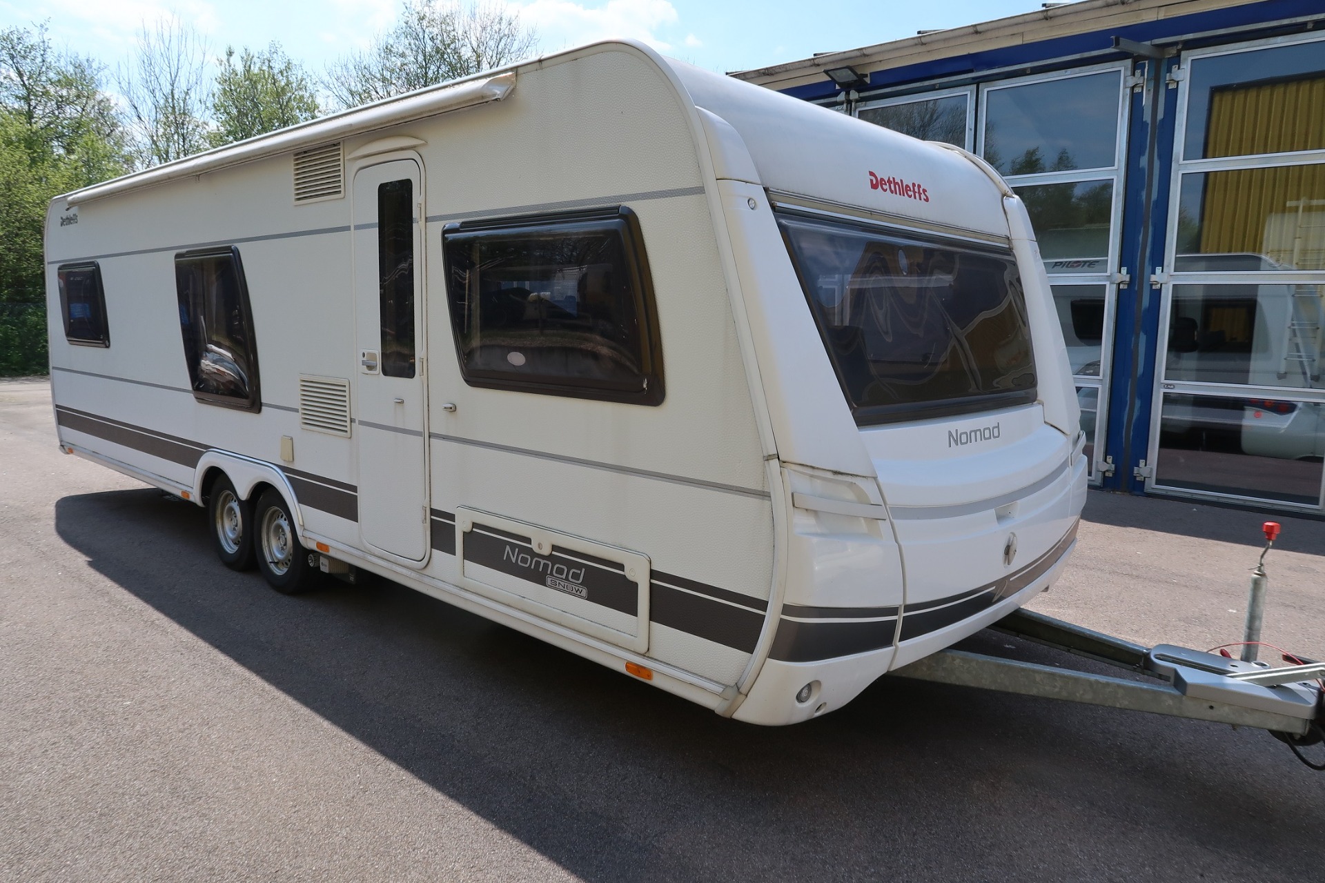 UNIK utrustad husvagn. Självförsörjande på el. Dethleffs Nomad 740 RFK - Snow. Barnkammarmodell. Rymlig vinteranpassad husvagn. Vinterkomfort paket Alde Snow. Styrofoam isolering. Barnkammar modell. Uttagen första gången 2018. Bodelsmiljö Merida. Dekor Almeria Ash. Alko säkerhetsdrag. AKS3004. Alko chassi. Thule 1200 markis. Tillhörande sidor till markisen. 3;e bromsljus. Planlösning med rymlig rundsittgrupp framtill, ett längsgående kök på vänstersidan med en trelågig gasolspis, (elektrisk pizo-tändning) vask och bra förvaring. Förlängningsskiva i köket. På motsatt sida en stor kyl med separat frysfack. Midi heki-taklucka. Dörr med fönster i samt myggnätsdörr. Utvändig laslucka. Dubbelsäng i mitten. TV-hållare. 2 garderober. Central i vagnen är den takmonterade ac'n monterad. Under sängen finns ett rymligt lastutrymme. Sängöverkast. WC med dusch i separat utrymme och på motsatt sida badrumsvask. Thetford kassett-toa. Baktill finns en sittgrupp i vinkel samt en längsgående våningssäng, samt garderob. Utrymmen är avdelningsbara. Utrustad med ALDE 3020. Med integrerad varmvattenberedare. Drift på 220volt och/eller gasol. Eluppvärmd och isolerade avloppsrör. Färskvattentank ca 38L. Gråvattenvagn. ALDE vattenburen golvvärme. Aircondition Dometic Freshjet 2200. (går även att köra när man inte är nätansluten). 1200watt solcellspaket - Sunpower. 4st SuperB Epsilon 90Ah Lithium batterier = 360Ah. (4x1200=4800 Wh) 3st Western regulatorer (1st per 4 solceller). Kostnad ca 150.000.- som nytt. Går att köra A/C'n, kaffebryggare mm utan att vara ansluten på externt 220volts nät. Perfekt om elstolpen inte har ampere så att de räcker till eller vid fricamping. Utrustad med nätprioriteringsrelä som kopplar bort invertern om extern 220volt kopplas på.