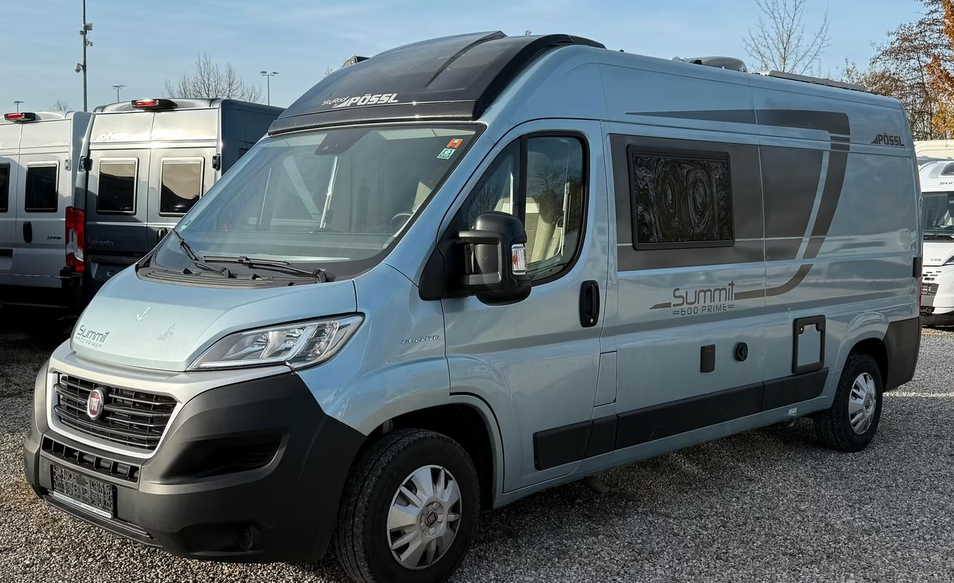Plåtis byggd på Fiat chassi. Fiat 2,2L på 140hk. 6vxl manuell växellåda. Mätarställning 3586mil. Euro 6 motor med grönt miljömärke.AD-blue. ABS. ESP. A/C i förarhytten. Radio, multimedia. Elektriska fönsterhissar. Farthållare. Elektriskt inställbara ytterspeglar. 2x airbags. Fjärrstyrt centrallås med nyckeln. Multimedia med dubbeldinskärm. Backkamera. Navigation. Remis mörkläggningsgardiner i förarhytten. Ramfönster. Markis med svart hölje. Fast Dragkrok. Stort takfönster i förarhytten. Tygklätt tak. Navkapslar. Solcell på taket. Servicebok med flertal servicar, senast våren 2025 (med kvitton). Prime-utförande, Pössl mest påkostade.