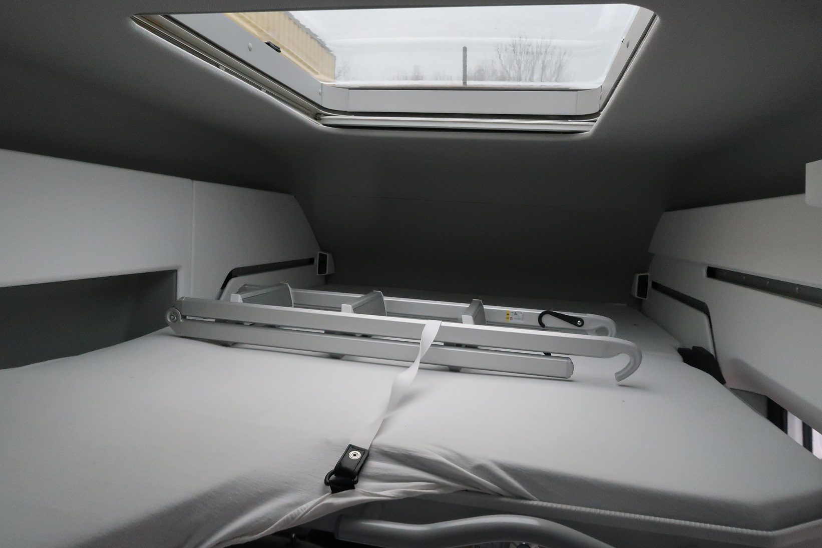 Taksäng ovanför dinette och förarhytt med stege. Panoramafönster. Myggnätsdörr. Utvändig dusch placerad i bagaget. Plats för två gasolflaskor. Elektriskt ingångssteg.
