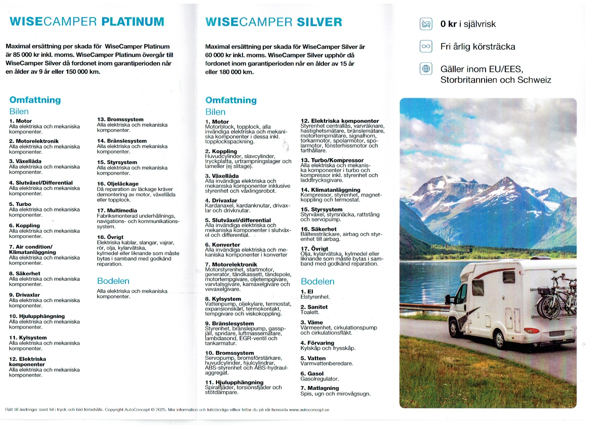 På denna husbil ingår AutoConcepts omfattande försäkring i 12 alternativt 24 månader. Se nedan länk för omfattning och innehåll. Denna husbil kan fås med AutoConcept Platinum